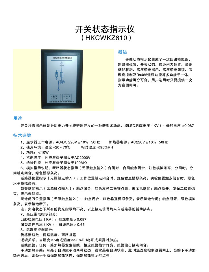 - 產品簡介:???HKCWKZ610開關狀態指示儀,安徽徽凱創電力保護設備有限公司