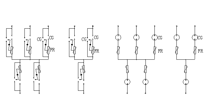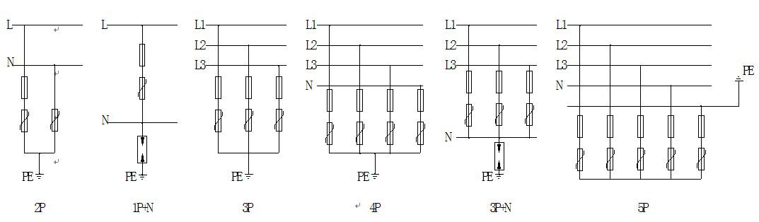 在三相四線制系統(tǒng)中,三條相線和一條零線對(duì)接地線之間均接有保護(hù)器。在正常情況下保護(hù)器處于高阻狀態(tài),當(dāng)電網(wǎng)因雷擊或其他原因造成浪涌過電壓時(shí)。保護(hù)器將在納秒級(jí)時(shí)間內(nèi)迅速導(dǎo)通,將浪涌過電壓引入大地,從而保護(hù)了電網(wǎng)上的用電設(shè)備。當(dāng)該浪涌過電壓通過保護(hù)器且消失后,保護(hù)器又重新恢復(fù)到高阻狀態(tài)。從而不影響電網(wǎng)的正常運(yùn)行。